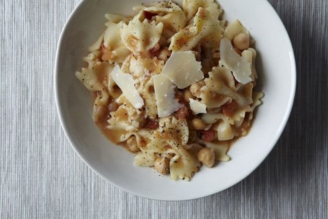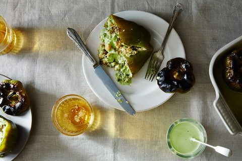 Smoking sounds so intimidating and time consuming, right? We're here to tell you it's not. You don't even need a stove top smoker. We used Amanda's wok, lined it with foil and set the fish on a round cake rack set above the wood chips. After sealing the wok with more foil, we simply turned on the burner and let it smoke away. (It does help to have a good fan above your stove.) The salmon, which is brined before smoking, emerges from the smoker taut and bronzed, infused with five spice powder, salt, sugar and soy sauce. You can also broil or grill the salmon if you want to skip setting up the smoker -- you just won't get that rich woodsy flavor. Then it's up to you to either leave the salmon whole or break it into bits to mix with soba noodles, tatsoi and a kicky ginger dressing.